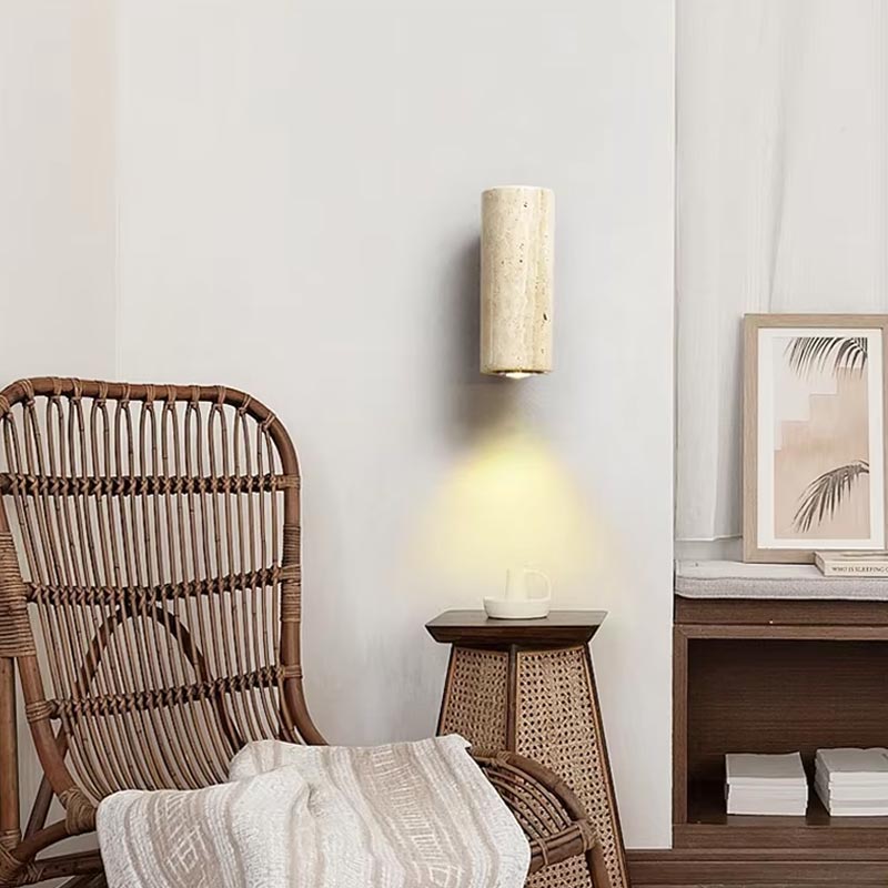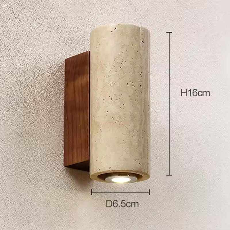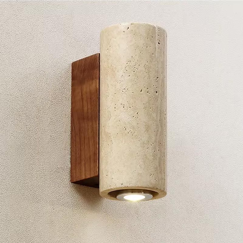 Portate un sofisticato tocco bohémien nella vostra casa con questa applique in travertino e legno. Il suo design cilindrico combina il carattere elegante del travertino naturale con il calore del legno, creando un effetto autentico, minimalista e senza tempo.