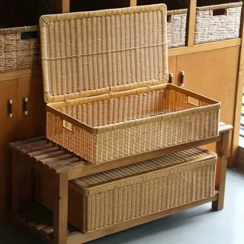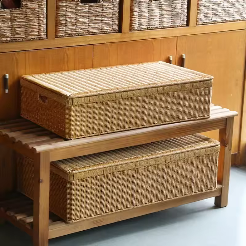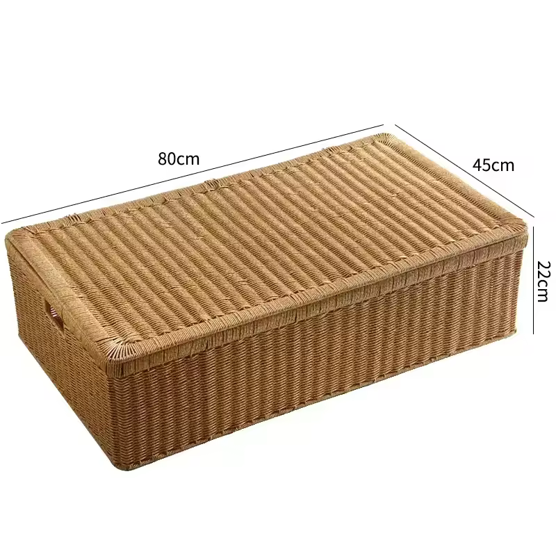 Combinate funzionalità ed eleganza naturale con questo contenitore in rattan, appositamente progettato per ottimizzare lo spazio sotto il letto. Grazie alle sue dimensioni generose (80 x 60 x 40 cm), potrete riporre facilmente vestiti, coperte o accessori mantenendo la vostra camera da letto perfettamente in ordine.
