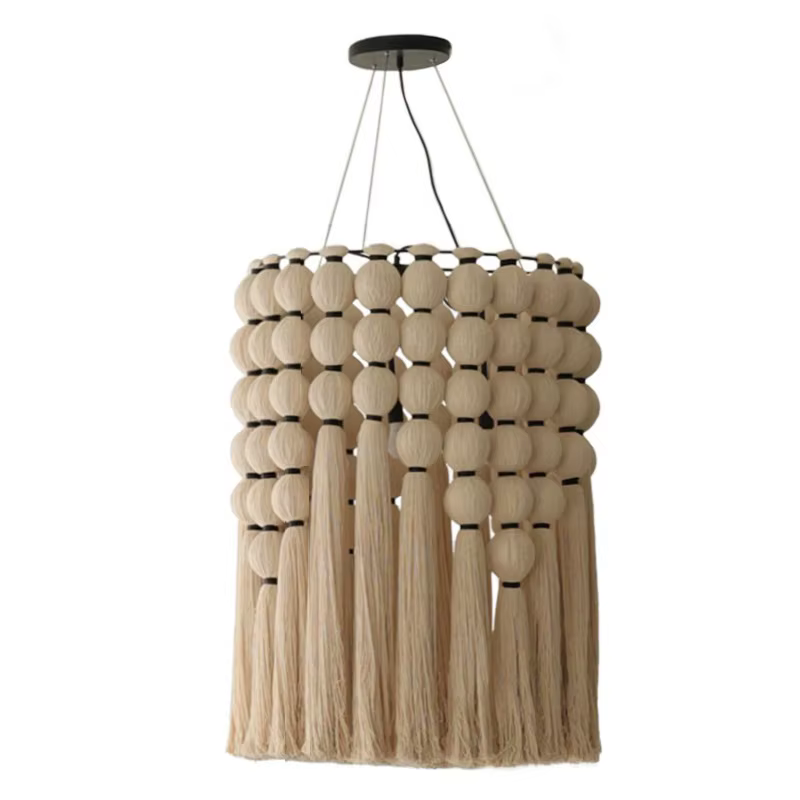 Date un tocco naturale e caldo alla vostra casa con questa bellissima lampada a sospensione bohémien in cotone. Disegnata con baubles intrecciati e frange leggere, diffonde una luce morbida e rilassante, ideale per creare un’atmosfera avvolgente.