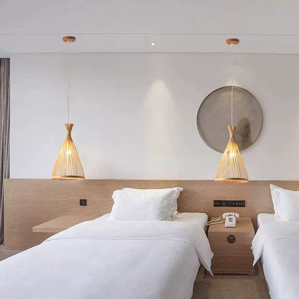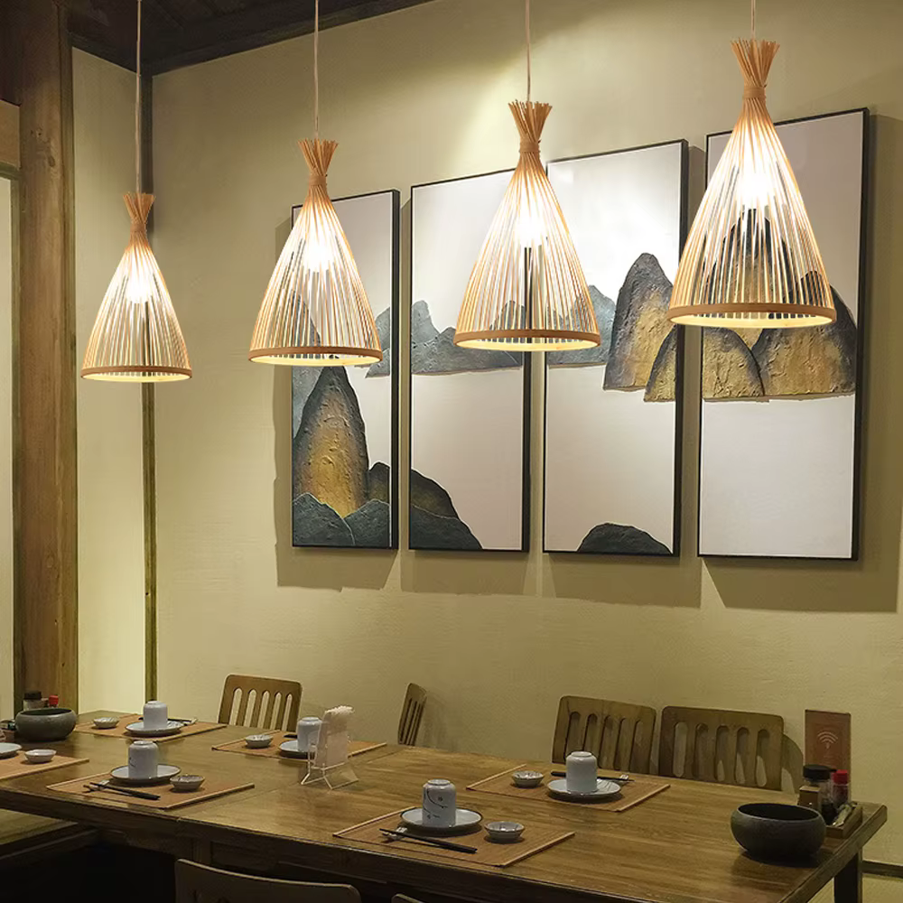 💡 Suggerimento decorativo: posizionate più lampade a sospensione in bambù di dimensioni diverse in un soggiorno o in una sala da pranzo per un effetto ancora più caldo e trendy.