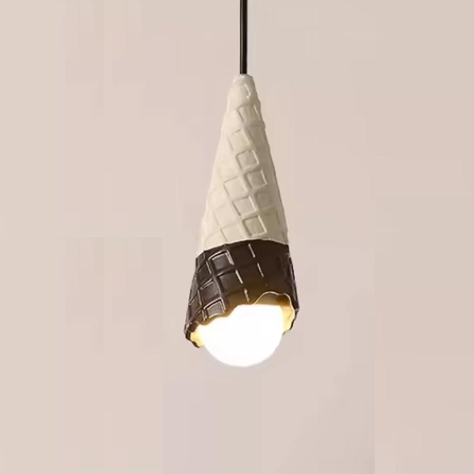 Lampada a sospensione in ceramica “Cono gelato” bianco / marrone cioccolato